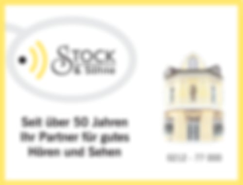 Optik & Akustik Stock in Solingen-Ohligs ist seit 50 Jahren ein Familienunternehmen. Firmengründer Manfred Stock begann seine Ausbildung 1957. Seit 1961 war er in Ohligs als Optiker tätig, seit 1973 selbstständig als Teilhaber der Firma Optik Straube. 1980 entstand das erste Geschäft unter dem Namen Stock in Solingen-Wald, das einige Jahre später von Sohn Optikermeister Peter Stock übernommen wurde. Im Jahre 1999 mit der endgültigen Fertigstellung unseres Wohn- und Geschäftshauses im Herzen von Ohligs erweiterte Sohn Thomas Stock (Hörakustikmeister) das Betätigungsfeld um die Hörakustik. Inzwischen besteht das Team aus Augenoptikermeister Peter Stock als technischem Betriebsleiter des Bereichs Augenoptik und Thomas Stock als technischem Betriebsleiter des Bereichs Hörakustik.